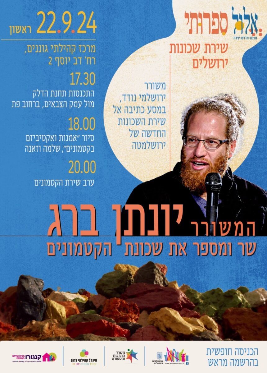 אלול ספרותי מתכבדים להזמינכם.ן לשירת שכונות ירושלים המתחדשת: