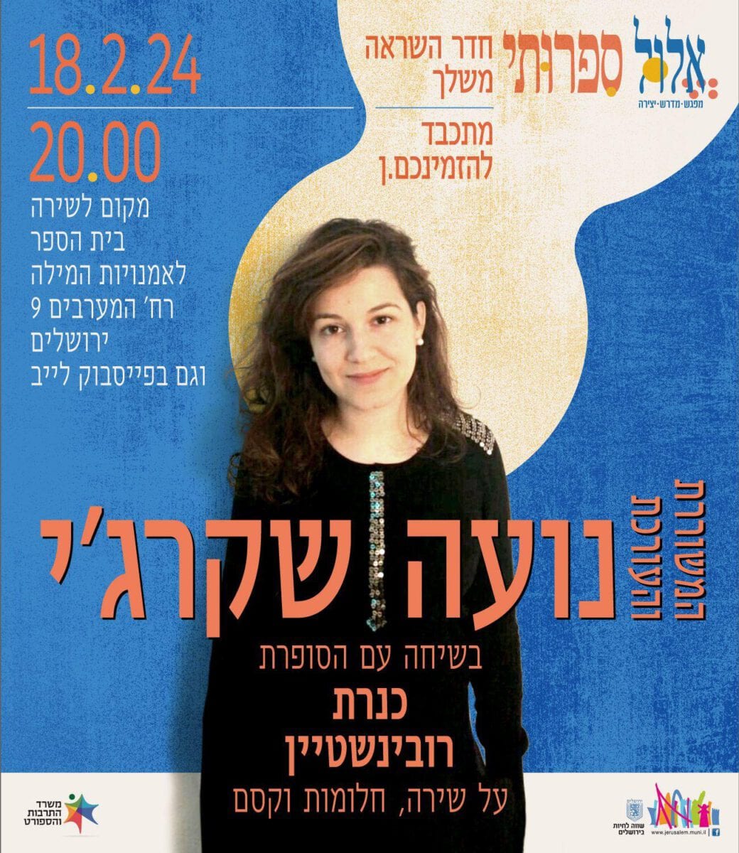 מוזמנים ומוזמנות לערב אלול ספרותי – חדר השראה משלך: והפעם נועה שקרג'י, משוררת ועורכת, בשיחה אינטימית עם הסופרת כנרת רובינשטיין על ההשראה והקסם במקום משלה לשירה, בבית הספר לאמינות המילה.